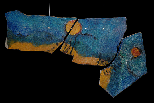 Acryl auf Natursteinplatten, Maße ca. 40 x 70cm, auf einen Stahlrahmen montiert.