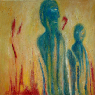 Reingard Apitzsch, 2009 "Retorte I & II", Öl auf Leinwand. Bildmaße je 60 x 60cm