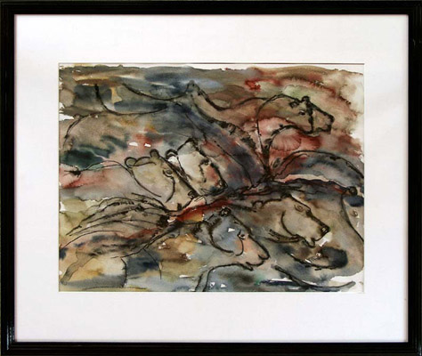 Tusche und Aquarell auf Karton, gerahmt hinter Glas, Bildmaße 48 x 36cm