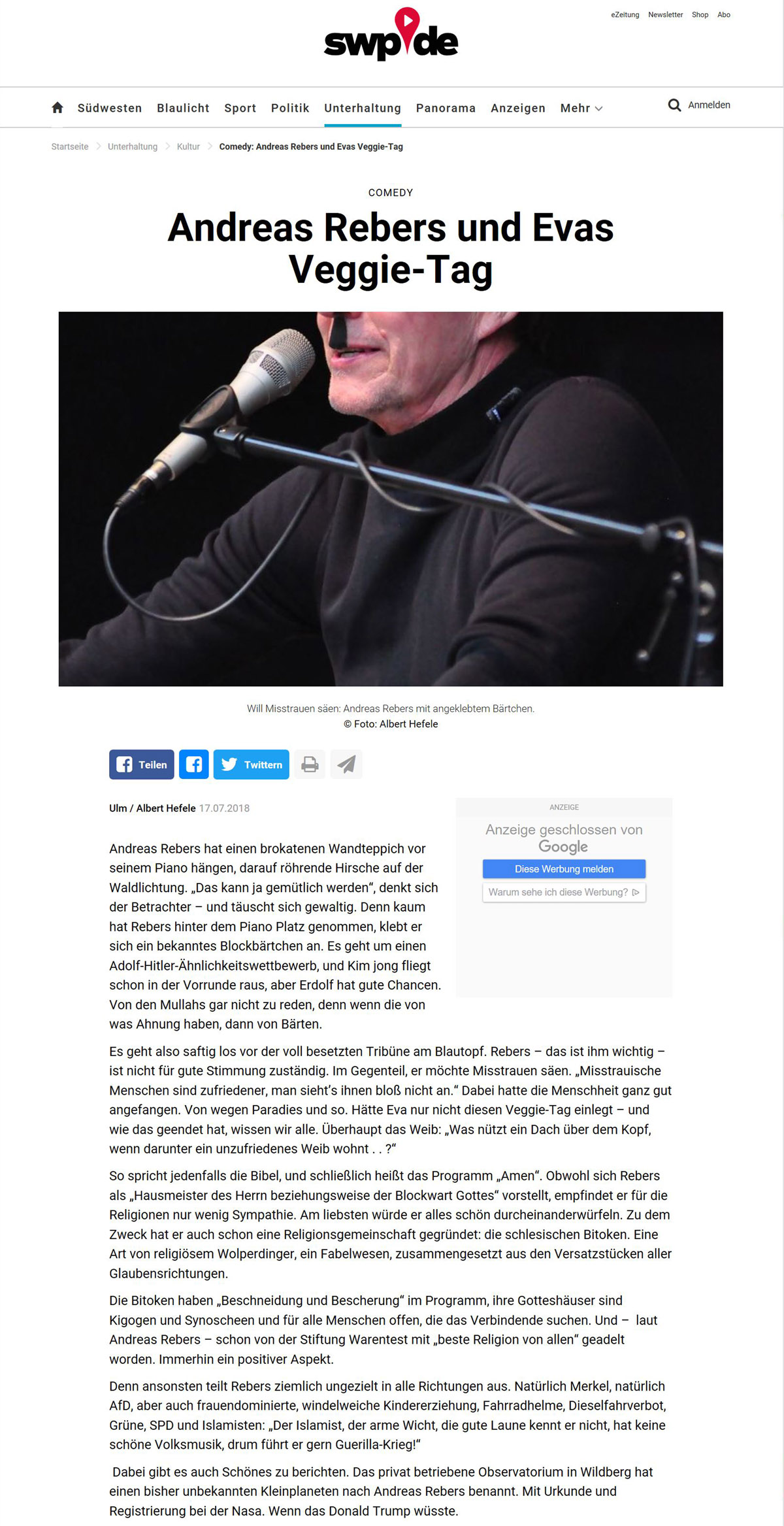 Bericht der SWP vom 17.7.2018 über die Veranstaltung