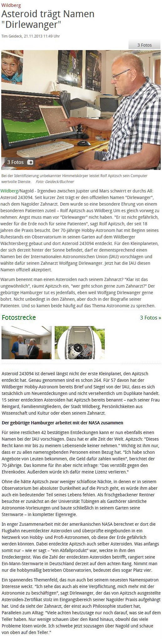 Schwarzwälder Bote zum Asteroiden "Dirlewanger"